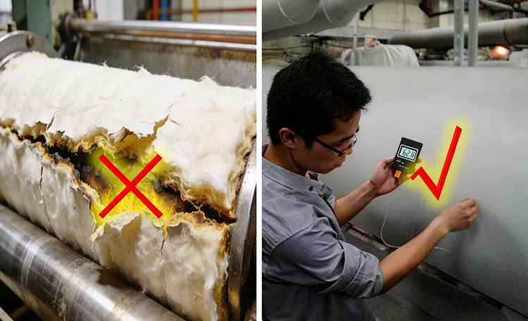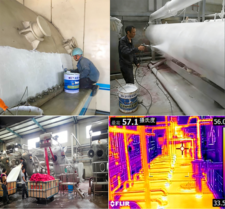实测数据见证实力:染缸涂装后表面温度从106℃降至70℃左右,平均降温超32℃,人手可直接触摸不烫伤。更关键的是,蒸汽消耗直接减少30%,长期使用能大幅降低生产成本。