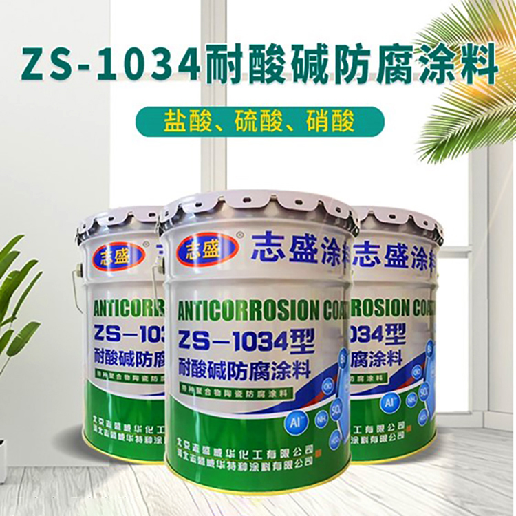 ZS-1034耐酸碱防腐涂料可以涂刷在有酸碱、溶剂、盐、中间体、化合物存在上的储罐、储糟、酸碱池、无机有机盐、合成器、反应釜、烘干设备、烟囱烟道、除尘脱硫、裂解装置、蓄水池、管道阀门、桥梁混凝土、化工钢结构及水泥混凝土等上涂刷。