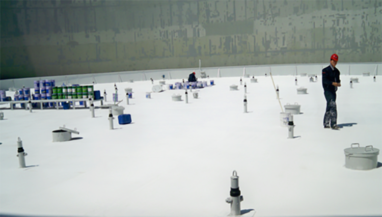 目前有更好的方案可以涂刷抗辐射隔热涂料,柴油罐金属表面先涂刷ZS-711导静电防腐底漆,防止因电荷聚积产生的电化学腐蚀造成金属壁减薄。接着涂刷ZS-221防晒隔热涂料中间漆,起到隔热抗辐射热屏蔽作用,最后涂刷ZS-223热反射隔热防腐涂料,起到抗热辐射反射隔热和防水封闭效果,三种涂层复合起到隔热防腐的综合效果,安全屏热系数高,使罐内温度降低到安全温度35℃以下,且ZS-223热反射隔热涂料表面自洁性高,不容易粘灰。