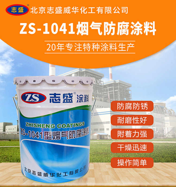 ZS-1041烟气防腐涂料通过硅无机聚合物改性,形成多嵌段共聚物涂层,其二维网状结构及超细微粉氧化物、硅、石墨等成分构成致密界面过渡层,有效阻隔酸碱侵蚀。该涂料耐蚀性强,可抵御H₂S、氯离子、SO₂、SO₃、HCl等介质腐蚀,防止冷凝水点蚀、应力腐蚀等。